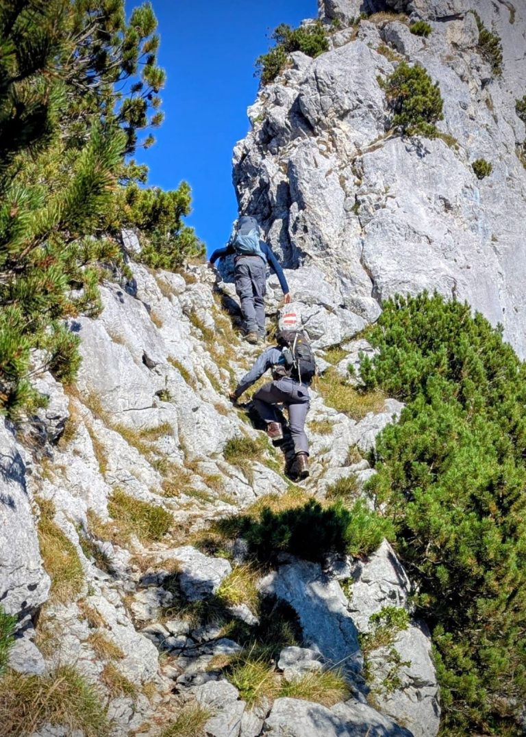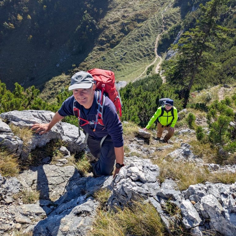 A lot of variety during the week. Some wonderful views at lunchtime, served by a bus. Some caving, and a few scary moments.