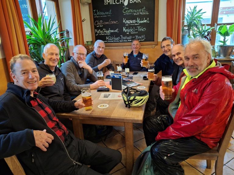 Well, it would be rude not to enjoy the local hospitality, wouldn't it? Notice the kilt worn by Ray, to contrast the traditional lederhosen worn by Matt ($10 from Amazon).