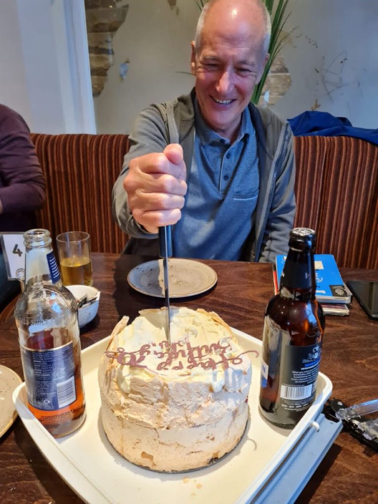 Beer and cake to celebrate a very significant birthday.