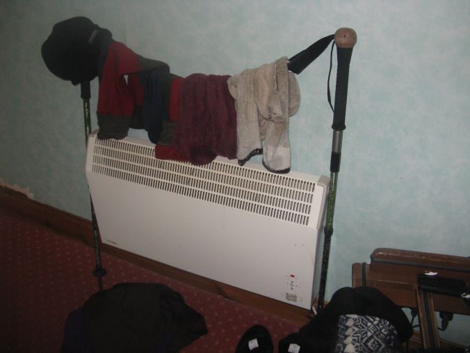 Another use for a stick! A clothes prop for wet socks